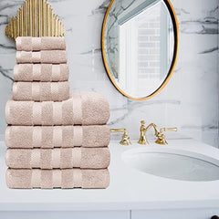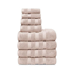 Vivendi 8-Piece Towel Set, 100% Cotton, Infinity Zero Twist (2 Bath Towels, 2 Hand Towels, 4 Wash Towels) Super Soft, Highly Absorbent Towels for Bathroom (Linen)