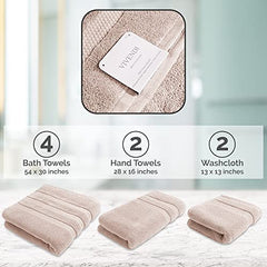 - Set Includes - Our perfect towel set includes 4 bath towels 54 x 30 inches, 2 hand towels 28 x 16 inches, and 2 washcloth Towels 13 x 13 inches.