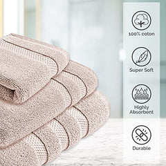 Details: Premium luxury terry towel collection is made with high-quality 100% genuine cotton zero-twist yarns. They are soft to the touch and become even softer after the first wash. These towels are also highly absorbent, fast-drying, durably made, and long-lasting. With a double stitch edge and Triple dobby weave, these towels are an elegant addition to any bathroom. Set includes 4 standard sizes Bath Towels, measuring 30" x 54", 2 standard hand towels, and 2 washcloths for the preferred set ratio.
