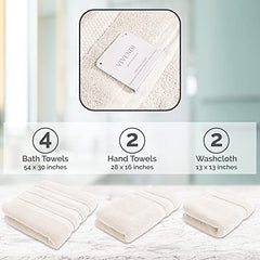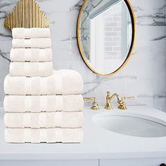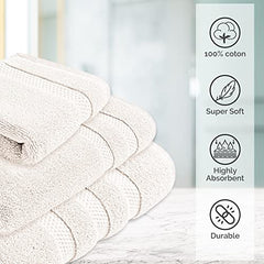Vivendi 8-Piece Towel Set, 100% Cotton, Infinity Zero Twist (2 Bath Towels, 2 Hand Towels, 4 Wash Towels) Super Soft, Highly Absorbent Towels for Bathroom (Off White)