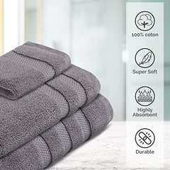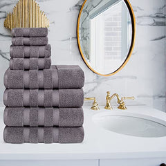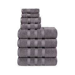 Vivendi 8-Piece Towel Set, 100% Cotton, Infinity Zero Twist (4 Bath Towels, 2 Hand Towels, 2 Wash Towels) Super Soft, Highly Absorbent Towels for Bathroom (Charcoal Gray)